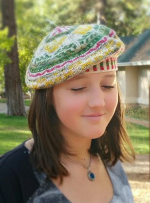 Made for the Narnia Mini Skein sets for Phydeaux designs. The Tam features impressions of Narnia such as Crowns for the Kings and Queens of Narnia, the Castle Cair Paravel, the fire-flowers that grow in the mountains of the sun, Mr Tumnus' scarf, Pine boughs for the forest, and an outline of a stone table.