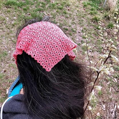 Naseem means breeze in Arabic. This stylish kerchief, with attached headband, can be worn in the breezy spring or fall, or as a shade from summer sun. It is a sweet, little introduction to knitted lace which creates a pretty accessory in a short time.