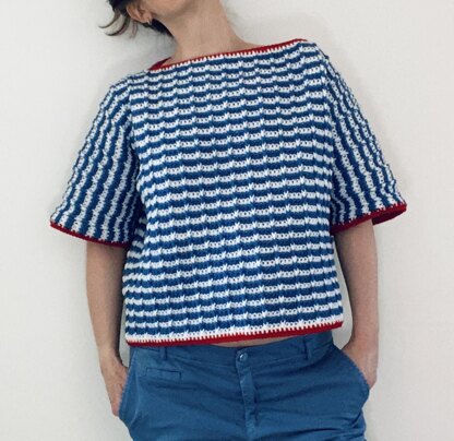 This top is easy to make and a perfect addition to your wardrobe all year round. It’s easy to make and requires no shaping. It’s worked in one single piece and the sleeves are worked as we go. After finishing the whole piece, all you have to do is to sew the sides and add a brim. The back and front panels are made one continuing the other, leaving the neck opening. The top is oversized but if you want a closer fit you can just start with less stitches than written in the pattern. You can add or reduce the number of rows to adjust the length if you wish as well. Same if it comes to the length and width of sleeves. Feel free to use the yarn and matching crochet hook of your choice to make it.