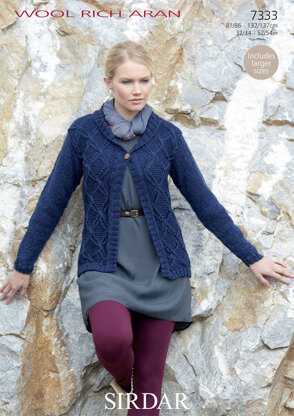 Navy Jacket in Sirdar Wool Rich Aran - 7333 - Downloadable PDF is a Knitting pattern by Sirdar, available as a Downloadable PDF and includes instructions in English. Super fun to make, this pattern could be your next masterpiece!