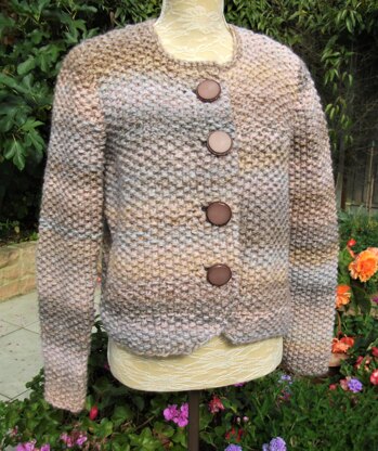 A cute but smart boxy jacket. The yarn is used double throughout, making it a really quick and easy knit. If you wish to lengthen the jacket, this is noted in the pattern instructions for you.