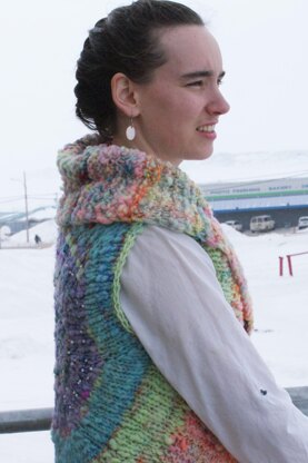 The Nebula Medallion Vest is a free pattern, designed for handspun at any gauge. This is a great way to showcase a super-bulky art yarn, either in the center back or in the shawl collar.