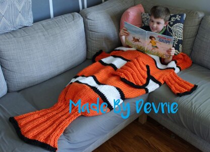 This Nemo blanket is a perfect blanket to sit and watch a movie or relax in while you read a book. The blanket is flat for the first half, which will make getting into it easier. It is then joined in the round to make it like a sleeping bag at the base of the tail to keep your feet nice and warm.