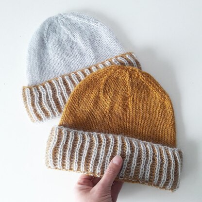 Neolio est un bonnet bien chaud avec une bordure moelleuse au point brioche qui réchauffera vos oreilles.