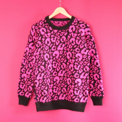 This over-sized jumper features a very bold take on animal print. Created using the Fair Isle method, this is quite an advanced knit, but well worth the effort! This pattern includes charts colour-coded for different sizes, so I would only really recommend it if you are quite an experienced (or very ambitious!) knitter. This pattern is in multiple sizes to fit chest/bust from 81cm/32in up to 122cm/48in. Techniques include knit and purl stitches, Fair Isle colour work from charts, increases and decreases and picking up stitches.