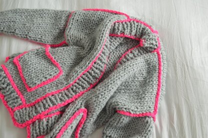 The Neon Outline Cardi is an big and cosy cardigan with patch pockets, designed to highlight the seams which we usually try to hide! Throw it on with loungewear for a comfy night in front of the TV.