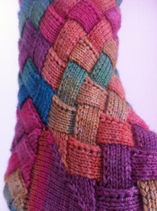 Skill Level: Intermediate to Advanced. The entrelac makes the pattern a bit tricky, and the unusual construction adds a bit to the confusion. It's not difficult knitting, but an understanding of sock construction helps and a careful reading of the pattern will be necessary.