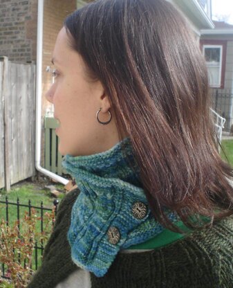 Extra-warm cabled cowl is knit flat and cozily overlaps around your neck, secured with two buttons. This is last pattern in my Nest Egg series (the Nest Egg Hat and Fingerless Gloves are also available in my shop!)!