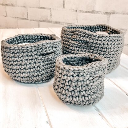 These nesting baskets are perfect for controlling clutter and organizing. When not in use they conveniently nest together for storage.