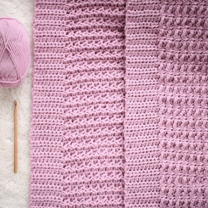 Blanket pattern uses heavy worsted or aran weight yarn. Drops Nepal used for blanket in photos. Multiples for increasing blanket size are included.