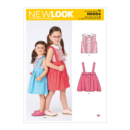 New Look N6664 Toddlers' & Children's Skirts With Shoulder Straps & Peter Pan Blouse 6664 - Paper Pattern, Size 1/2-1-2-3-4-5-6-7-8