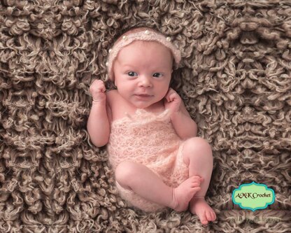 Newborn Lace Romper and Tie Back Headband Photo Prop