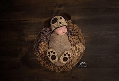 This crochet pattern give you the instructions, so that you can make a newborn baby puppy hat and shoe/booties set. Perfect addition to any newborn photo session. Please keep in mind that all children should be monitored while wearing and playing with items.