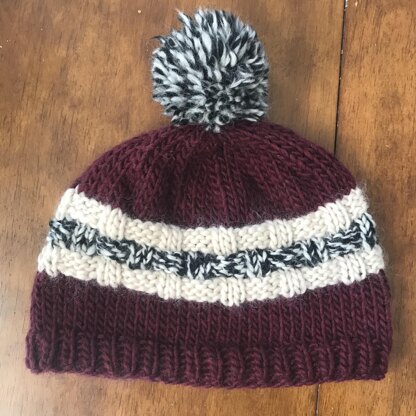 This winter hat features a multi-colored basket weave stitch in the middle of stockinette stitches. For my hat, I use bulky weight yarn, but the directions are written in such a way that makes it easy to adapt to any gauge or size. I also provide directions on how to create a knit pom pom that really finishes off the piece.