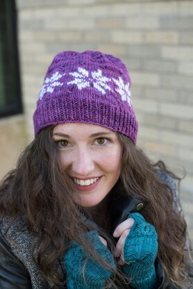 Worsted-weight (approx. 220yds per 100g) 80 (90, 115, 130)yds [75 (85, 105, 120)m] of main color and less than 20 yds of contrast color for snowflakes