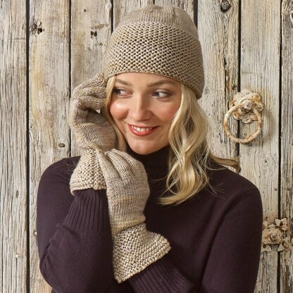 Nicole is a set comprising a close fitted hat and cuffed gloves.