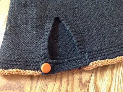 This is a tunic style pullover constructed side to side in Reverse Stockinette with a boat neck. There is a knit stitch detail up the sleeves that forms the edge of the rolled neckline. Stitches are then picked up around the body and worked top down. A slit, with optional button tab on one side, adds a little interest at the hem - as does the little pop of color at the cuffs and hem.