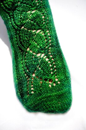 Make a lacy, delicate sock for warm summer days! This feminine sock is a good intro to lace for beginners, but interesting enough for the more advanced. Includes instructions for customizing for feet of all widths. This is the toe up version of the Dayflower Sock.