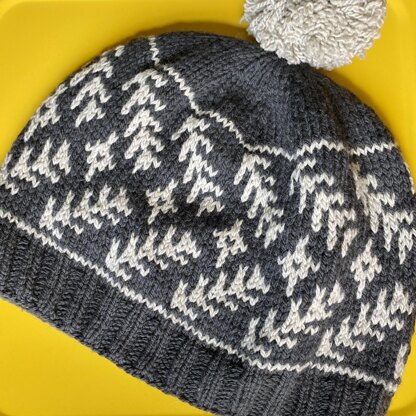 Yarn: Barrett Wool Co. Woolens sport weight (180yds/50g per skein) 1 skein each in “Inkwell” (MC) and “Putty” (CC). If you would like your pom pom to be in the MC, you will need a 2nd skein.