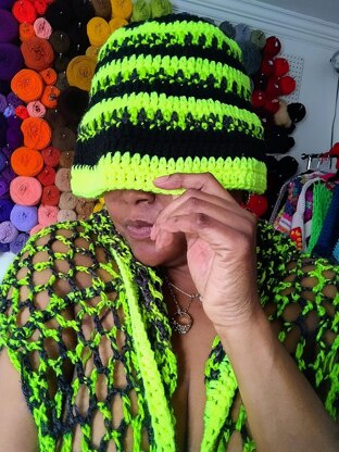 The hat is made up of simple and easy crochet stitches. This is an easily customizable piece to suit your head size. The hat's brim can be shortened or lengthened depending on your personal preference.