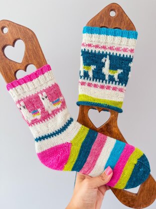 Who is ready to have some fun with my brand new sock pattern “No ProLlama? This pattern comes with 8 different colorwork charts to choose from to make your own fun Llama socks. You can choose between 2 different types of llamas and tons of different Borders to add some POP to your socks!