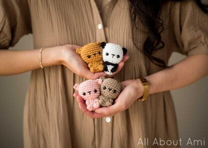 Crochet these adorable teddy bears with absolutely zero seaming! Make them in a variety of colors and attach them to keychains so you can bring these bears wherever you go! Special techniques are used so that you do not need to use a yarn needle to attach or sew any parts together at all. The samples in the pictures are crocheted using: 24/7 Cotton, Chenille Appeal Yarn, and Go For Fleece Sherpa yarn. You can substitute yarns of various thicknesses and textures to get teddy bears of all different sizes!
