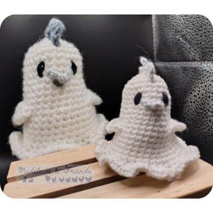 These little girls (or guys) are yet more additions to my ever growing chicken army. They started life as a gift to a friend, and now I'm passing them on to anyone that might enjoy a little phantom fowl. They make lovely bag charms, key rings or bookshelf guardians.