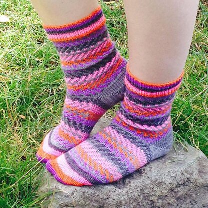 Notes This pattern includes directions for socks knit from the top down with a standard short row heel. The left and right socks are identical to each other with the exception of the colorwork pattern for the Front/Instep sts of the sock. The colorwork charts are mirror images of each other.