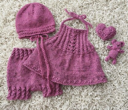 Fits both newborn and 21-22 inch reborn size knit romper, bottoms, bonnet, heart and bear lovie pattern THIS IS NOT THE FINISHED ITEM