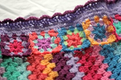 The requests for this blanket pattern have been overwhelming, and finally, it's here: Noelle's Baby Blanket. Filled with colors of the rainbow, Noelle's Baby Blanket features classic granny squares which border a lovely granny stripe. This beautiful crochet pattern is easy to follow with photo-rich instructions. Pattern includes all the yarn colors and recommended brand of yarn. This is my go-to baby blanket pattern for that "very special" baby. It looks challenging, but it is a joy to make and easy to finish. The photos in the instructions are of two separate blankets crocheted with different trims. One features more yellow in the granny squares with a purple scalloped border. The other features a rose scalloped border.