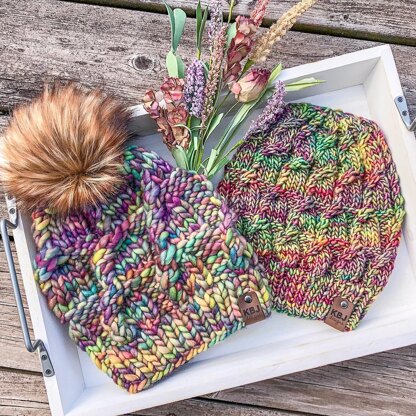 This is a PDF knit pattern to make a textured hat in adult size with 3 different yarn weights (#5 light bulky, #5 bulky, #6 super bulky). This pattern was designed specifically for Malabrigo Rasta, Malabrigo Chunky, and Malabrigo Mecha. The pattern includes 2 sizes (teen/adult and large adult). It is very easy to adjust for other sizes in the lighter weights.