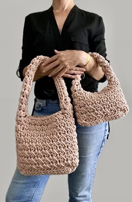 MATERIALS Crochet hook: 9 mm (US M/N-13) USED Yarn type: 5mm cord Name: Bobbiny Colour: Peach shake Quantity: SMALL: 360 grams/ 12,7 oz (75 meters / 82 yards). BIG: 640 grams/ 22,6 oz (125 meters / 136,7 yards).