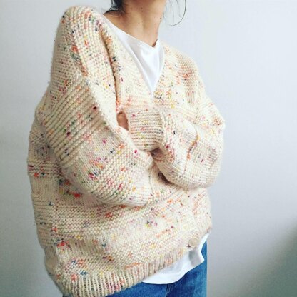 NORA cardigan woman is super easy to make, inside you will find graphics to go step by step with lots of information to make your knitting a relax experience. NORA is an oversized silohuette with dropped shoulders. The beautiful texture is made by combining knit and purl where indicated, so there is no trouble if you are a beginner. This pattern has a Mini Me (coolkids 2 to 14 years, baby 1/3 to 12/18 months) so you can wear match style with your little monsters. Made in MERIWOOL Confetti by We are knitters, it can also be made on Petite Wool (WAK) available in many colors.