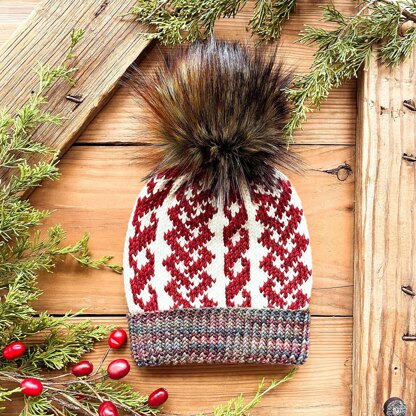This classic, stranded colorwork beanie was inspired by "nordic" cable knitting, however, it is only colorwork and does not require knitting actual cables. This pattern is truly such a fun and rhythmic pattern to knit, and the color combinations are endless. The pattern includes a chart and video instructions as well. It is great for beginners too because the distance between the color changes is such that you do not need to catch your floats!