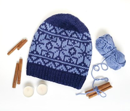 NORDIC ROSE hat knitting pattern in Large Adult and Kid sizes.