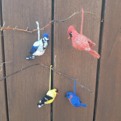 There are six birds included in this pattern: the northern cardinal, pileated woodpecker, blue jay, bluebird, American goldfinch and the bald eagle. Each bird is a small, easy project, that can be finished in an evening or so and is a great project to use up any scraps you have lying around.