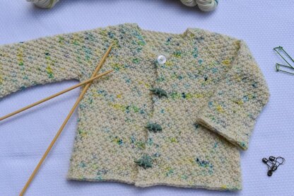 North Side is a baby cardigan worked seamlessly from the top down with raglan shaping. Small buttons add a colorful front closure. Offered in 4 different sizes, the smallest 2 can be made from 1 skein of the recommended sport weight yarn when worked to gauge. Once you find the rhythm of the Moss stitch that is worked throughout, it will become intuitive and you’ll be finished before the moss grows under your feet.