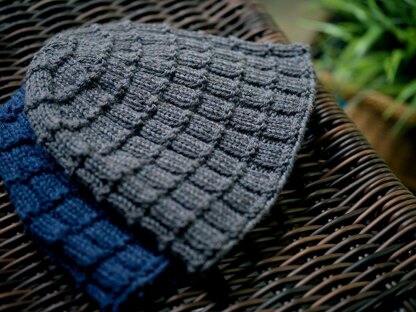 Yarn:CoopKnits Socks Yeah DK, 75% merino wool, 25% nylon, 112m/122 yds:50gm ball, gauge:22 sts:10 cm/4 ins using 4.0mm/US #6 needles when working with a single strand of yarn inColour #201 Tartarus (Dark Grey) or #203 Astra Planeti (Mid Blue).Note:The hat is worked with two ends of yarn held together throughout for extra warmth.