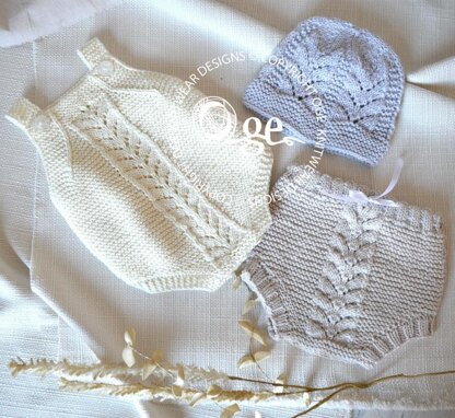 After many emails and requests from knitters I am thrilled that I have succumbed to your requests and worked on designing a little more to finalise my ‘Norwegian Fir Set’ which I am sure will become as popular as the matching Cardigan (Norwegian Fir Cardigan P109). The Romper and Nappy Cover are knitted in two pieces, as I know there are many, many knitters who prefer working on straight needles. Minimal seaming required. The hat is worked in the round. I believe this knit would be suitable for the advanced beginner knitter as the pattern is written out in full. A Big THANK YOU TO THE test knitters who worked on this set, your invaluable input is always greatly appreciated.