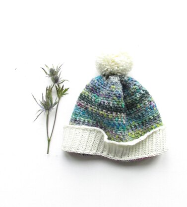 This hat was inspired by the variegated yarn itself, and although you needn’t use the yarn specified, it does make for a beautiful, finished hat. The band and body of the hat uses clever crochet stitches that give a knitted style finish, without the faff of using needles and ALL the joy of crochet ;)