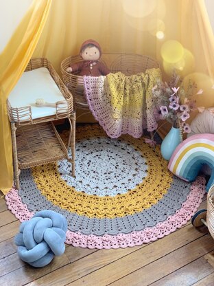 The design has 54 rounds with an optional extra 4 rounds. The design has several points that you could finish on to make place mats, doilies, wall hangings, table cloths or keep going to the last round for a throw blanket. If done in heavier weight yarns it can become a very sizeable blanket.