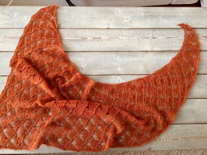 November Inn Shawl is shown in beautiful Kicarra Donegal Soft merino tweed made in Ireland , by rusty sprinkled Orange Multi colour way. I used needles US7 / metric 4,5mm and 360 m /394 yd of yarn November Inn construction chart is very flexible : you can use just about any weight of yarn, and you can make them in whatever size you are happy with . This pattern give you full freedom to use your choice yarn type and weight , and also needles size. November Inn shawl get into the crescent shape with blocking. The piece in front photo on this pattern is blocked, and you’ll want to do the same with yours. Chart only. Skills needed : Knit, purl, yarn over, knit from right to left, purl from left to right