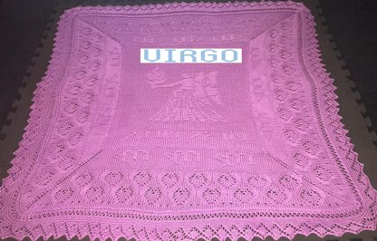 The blanket is worked is worked like a traditional Shetland shawl and is finished off with a lace edging.