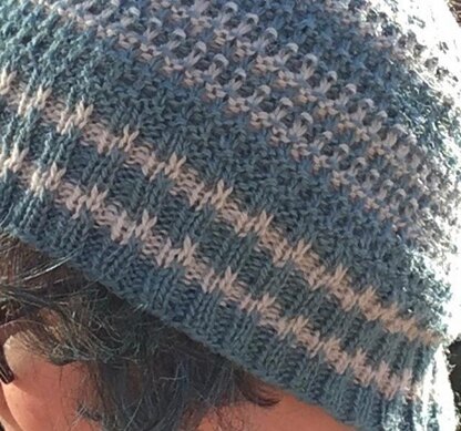 Worked in the round with a slipped stitch rib pattern that moves into a 2 colour corrugated slip stitch pattern, this is a warm and comfortable hat to wear. It is reversible and can be worn either way round.