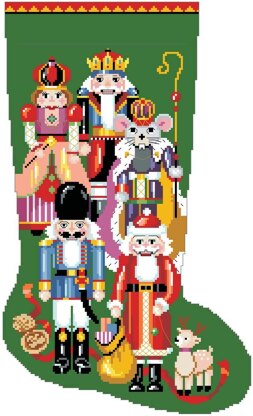 Designed by: Linda Gillum. A nutcracker for a stocking for Christmas, what more could a little girl or boy want? This unique motif combines a variety of classic nutcracker designs from around the world. Sparkling embellishments enhance the beauty of the design.