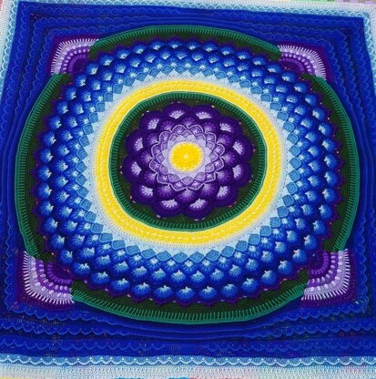The image of a water lily floating in a rippling pool of water is the inspiration behind this colorful, very tactile design.