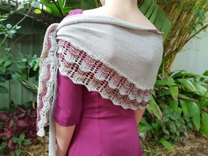 Evoking the spirit of yesteryear, this easy to knit lace trimmed shawl is a pleasure to make. Oaklinn Shawl is romantic and whimsical, a look you will love. The shawl has a crescent shape with elongated wings, which make it easy to wear in a number of different ways. Worked from the bottom up, easy to memorise lace bands in two colours teamed with straight forward shaping means this shawl doesn't require epic knitting. Size: About 165 cm or 65 " wide and about 40 cm or 15 3/4 " deep, after blocking Yarn: Fingering weight yarn (4 ply) 100 g (about 400 m) in Main Colour, a solid colour 50 g (about 200 m) in Contrast Colour, a variegated colour yarn I used Supergarne Aktiv Cotton Col. Circular Knitting needle 4 mm (US 6), at least 80 cm or 32 " long tapestry needle for weaving in ends Tension/ Gauge: about 22 sts and 36 rows in stockinette st, after blocking Alternative Yarn Suggestion: Malabrigo Mechita Pearl and Jupiter Sock yarns also work well for this project.