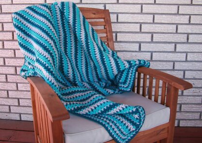 Ocean Throw reminds me of a clear, sunny day on the beach. The stitch pattern is a very simple zig-zag stitch that gives the impressions of waves, and the colors are the gorgeous blues and greys of the water. With just a 4 row repeat for this project, you can adjust the length and the width to suit your needs I give you all the details in the pattern notes. And to customize it even further, pick 3 of your favorite colors to match any room in your house!