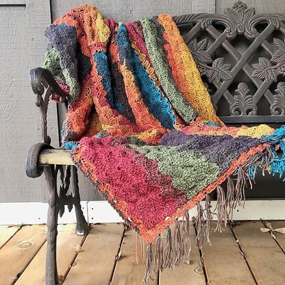 AFGHAN CROCHET PATTERN PDF. Free spirited, organic, and alive with color...Variegated yarn in Autumn hues work easily into a large shell pattern to capture the essence of fallen leaves. Nine squares are pieced together to create the afghan and finished with fringe for a unique and stunning piece you’ll be proud to show off season after season! Let’s get started and, as always, crochet something beautiful! CM