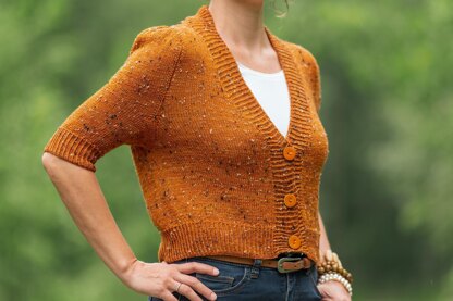 Kettu Yarns Merino Tweed (85 % Merino Wool, 15% Donegal nepps (viscose), 100g/437yds/400m per skein). You need approx.: 2(2, 3, 3, 3, 4, 4, 4, 4) skeins. If you use different yarn your yardage may vary.